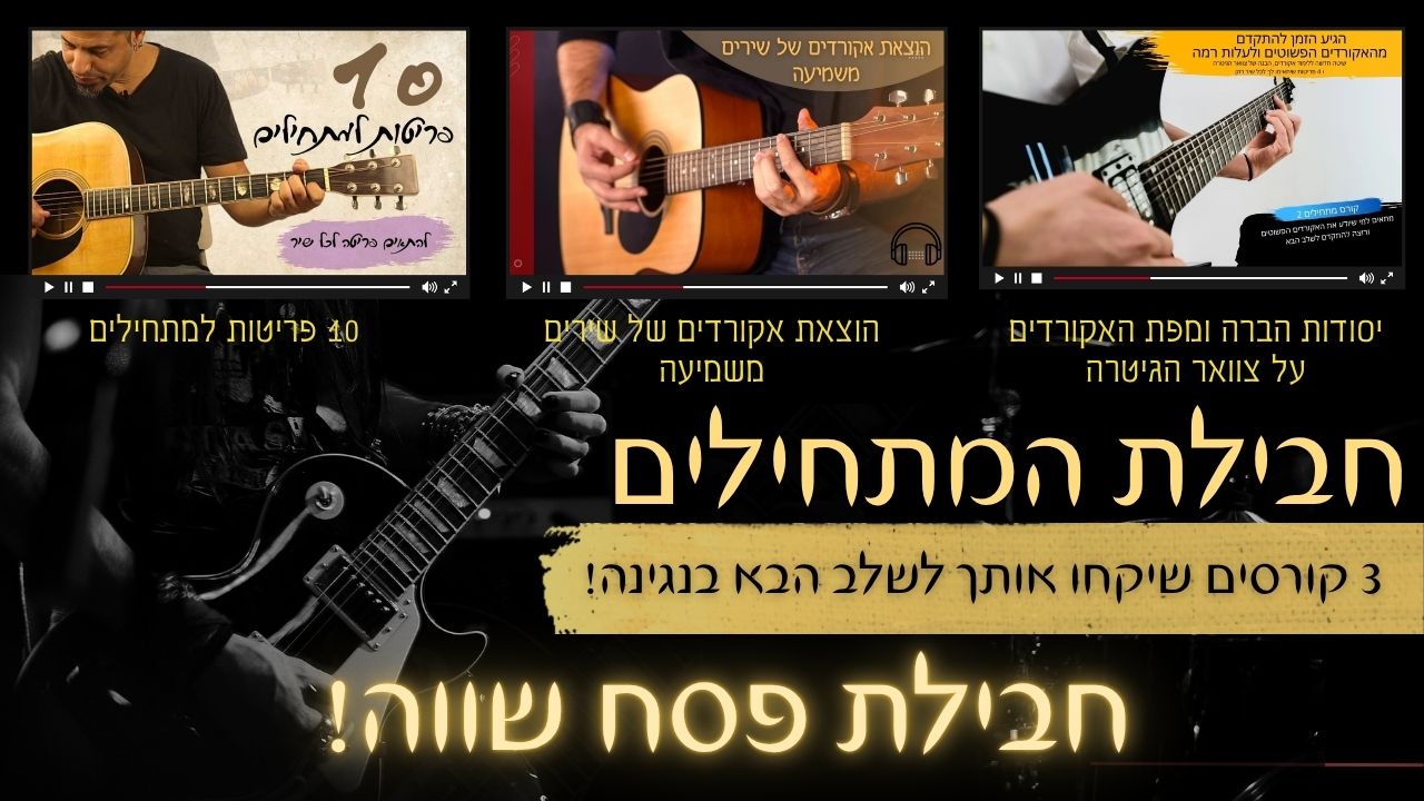 בקורס אתם תלמדו 10 פריטות שתוכלו לנגן איתם כמעט כל שיר שתרצו! לא צריך יותר להסתבך עם איזו פריטה לנגן בשיר כי אתם הולכים ללמוד את הפריטות הכי נפוצות והכי בסיסיות כאלו שאתם תמצאו במיליון שירים וכמובן נלמד איך להתאים פריטה לשיר